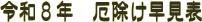 | 幼児の厄年 | 令和 6年生れ( 3歳) | 令和 5年生れ( 4歳) |